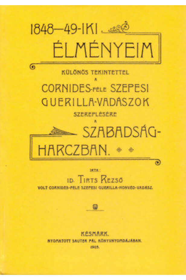 ... for guerilla hunters in the war of independence Rezső Tirts, wholesaler, writer, one of the starters of the Hungarian tourist movement; Army of 1848; 1831-1914. His work is a diary-like description of the military events experienced in the war of independence.
