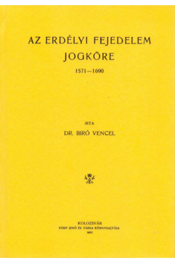 Bíró Vencel levéltári kutatásainak homlokterében az erdélyi fejedelemség története állt. A jelen kötet az Erdély belügyi fejlődése című szakdolgozatának folytatásaként született, amelyben a mindenkori erdélyi fejedelem jogkörét vizsgálja Báthory Istvántól Thököly Imréig. Írta Bíró Vencel. Kolozsvár: Stief, 1912. Hasonmás kiadás.