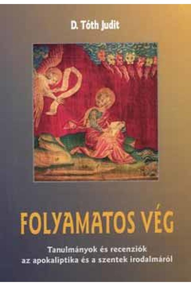 A folyamatos vég című tanulmánykötet D. Tóth Juditnak, a Debreceni Egyetem oktatójának azokból a munkáiból ad válogatást, amelyek az ókeresztény irodalom két nagyobb témaköréhez kapcsolódnak: az apokaliptika és a szentek irodalmához. A két, egymástól látszólag távol eső területet - ahogy erre a könyv címe is utal - a végidőre, az ítéletre irányuló szemlélet folyamatossága köti össze: a törénelmi apokalipszisben az eszkaton eseményeinek a kinyilatkoztatása, a szentek életében pedig a végső dolgokra tekintés. A tárgyalt témák magyar nyelvű szakirodalma az útóbbi évek fellendülő hazai kutatásai ellenére is csekély vagy olykor teljesen hiányzik, azért a szerző régebbi és újabb írásai az ókeresztény kor irodalma iránt érdeklődő olvasókat sok tekintetben eligazíthatják.