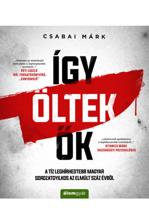 Csabai Márk, a közkedvelt krimiíró, hosszas kutatómunka után ebben a lebilincselő albumban gyűjtötte össze Magyarország tíz leghírhedtebb tömeg- és sorozatgyilkosának történetét az 1900-as évektől egészen napjainkig, fényképekkel és korhű tudósításokkal. A könyv megmutatja, hogyan vélekedett a kor embere és az akkori sajtó a bádoghordóba zárt női holttestekről, vagy éppen a tiszazugi arzénes asszonyokról, a hurkos-, esetleg a martfűi rémről...
