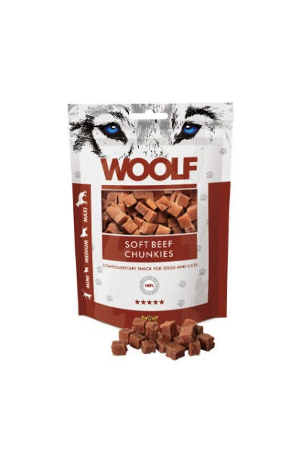 Woolf Beef Chunkies training snack reward snack for dogs beef cubes 100g